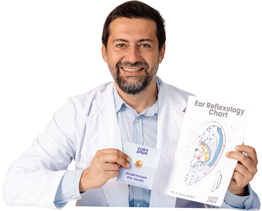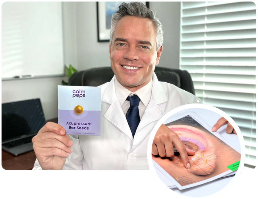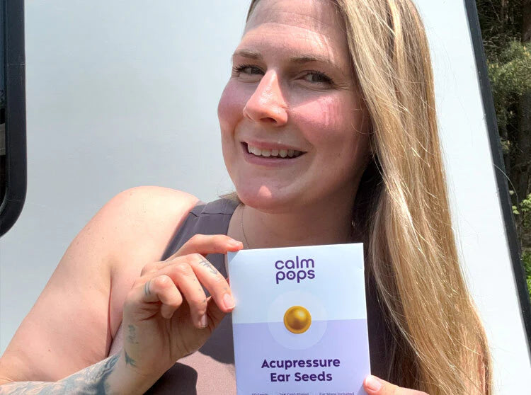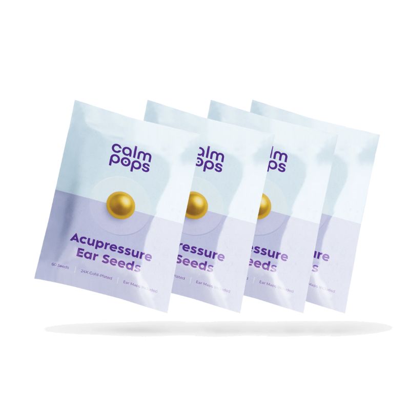 CalmPops are acupressure ear seeds designed to apply continuous pressure to those points.