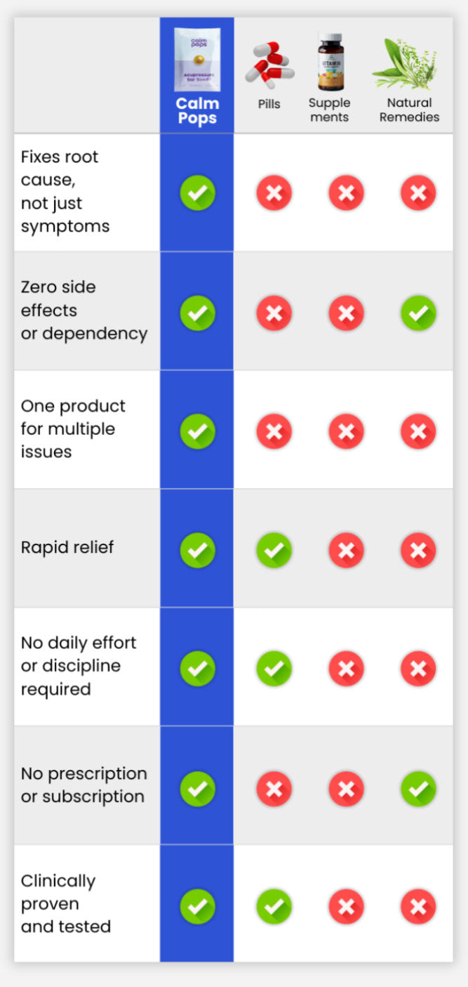 I learned a lot about my anxiety in therapy, but I still felt overwhelmed almost every day. I didn’t want to go on meds. CalmPops help me calm down when the anxiety starts. I just put one on and take a few deep breaths. It helps me reset before it gets worse. I haven’t had a panic attack in months.